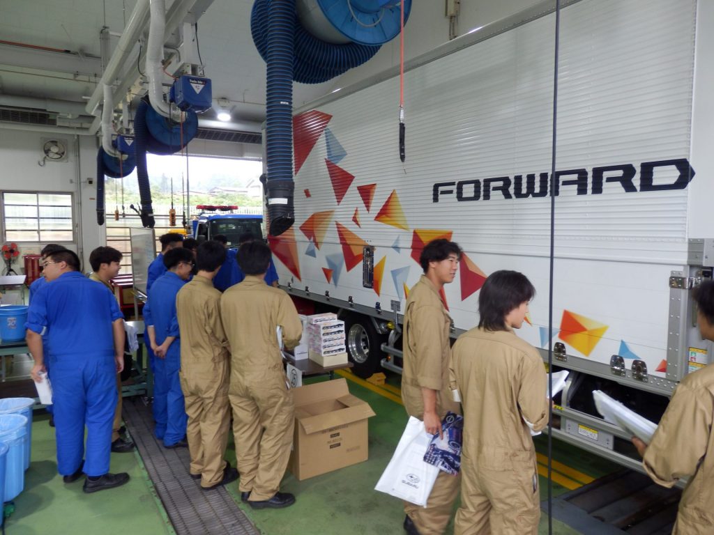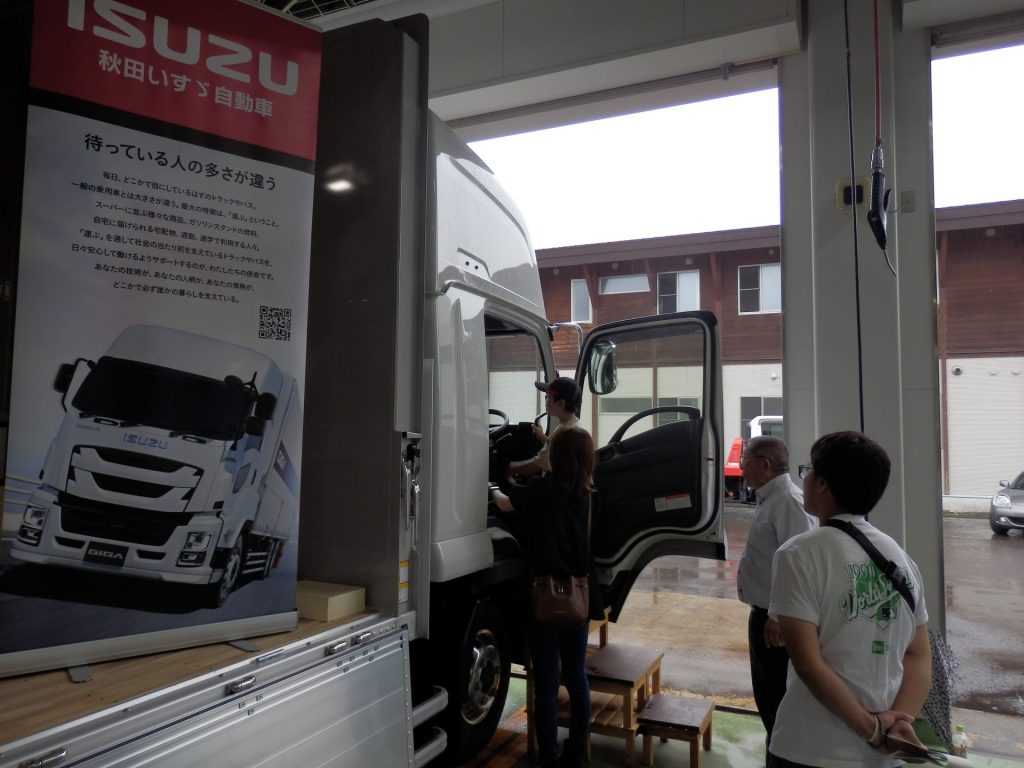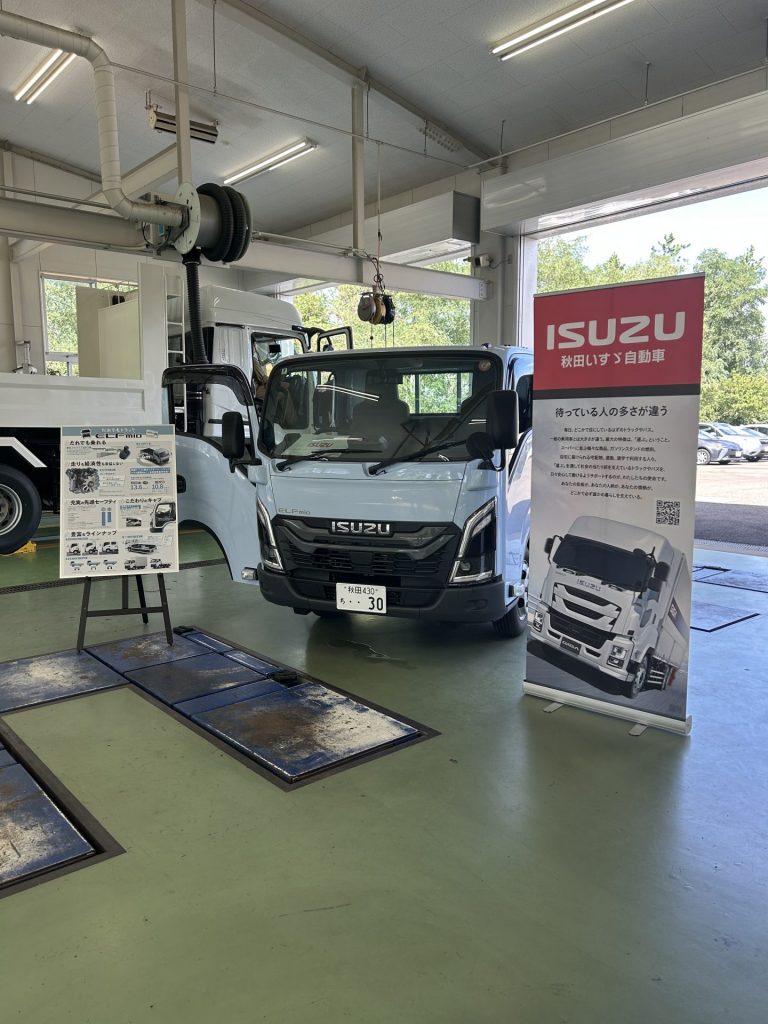 各校の自動車整備科ではギセンモーターショーと題し、県内外の販売会社さんが車両を展示しました!当社においては、秋田技術専門校さんでは ELF mio を、鷹巣技術専門校さんでは新型FORWADを展示させていただきました!